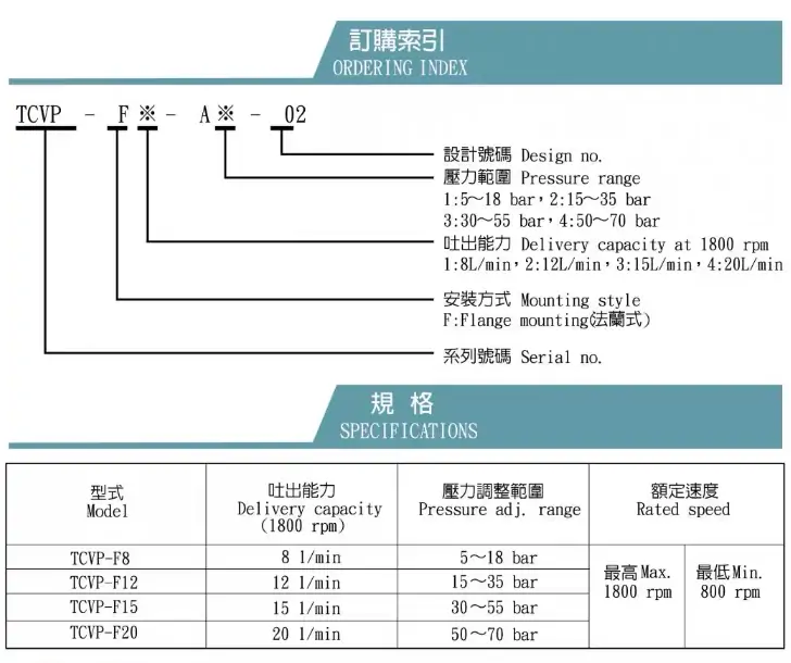 TCMC盛菖電機葉片泵浦 TC6VP-F8 F15 F20-A1/2/3/4-02 DH